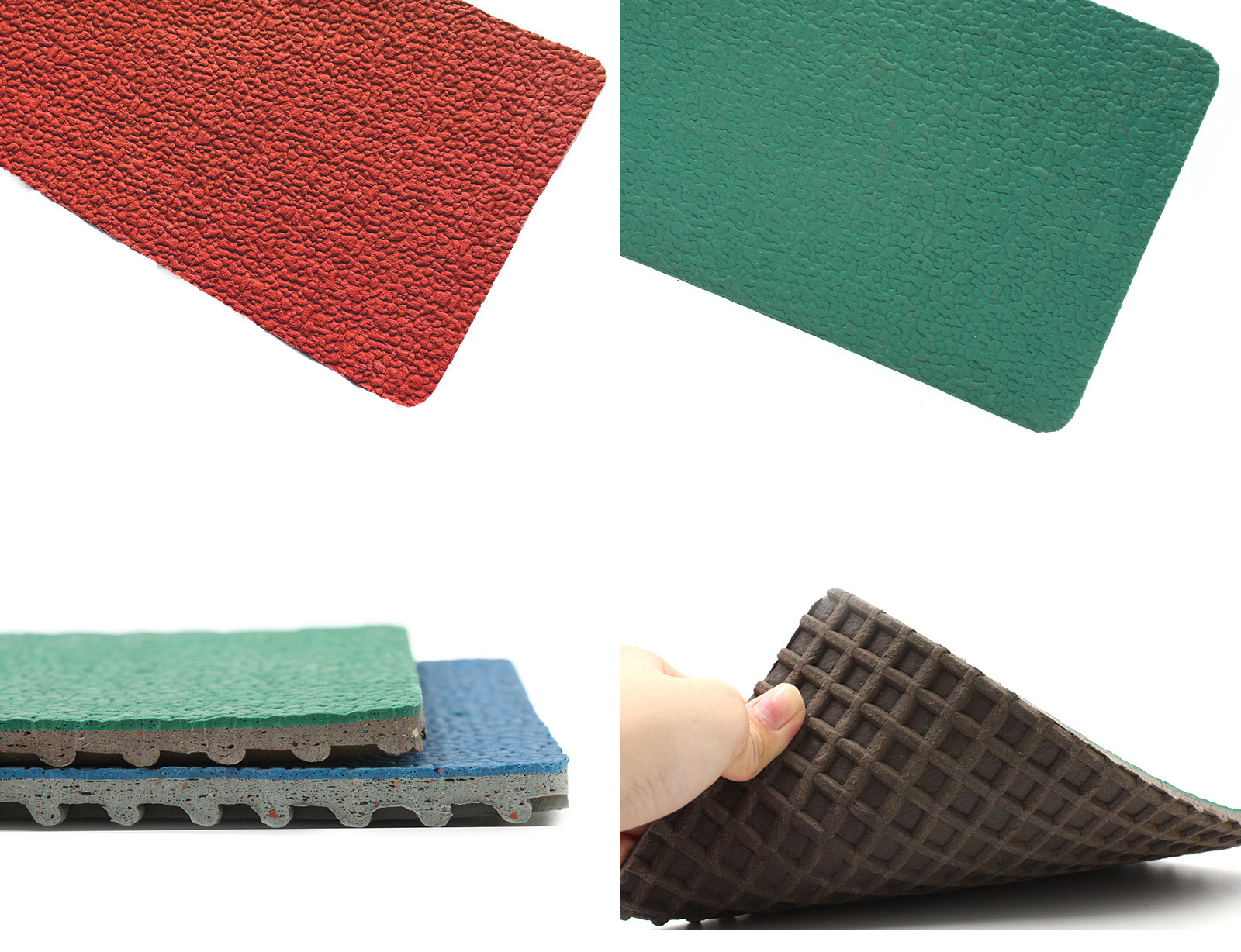 [The upper layer is colored composite rubber], it has long-term resistance to ultraviolet light and the effects of changing weather and weather conditions. The concave-convex pattern surface layer design has excellent anti-skid, anti-spike, anti-wear and anti-reflective effects.